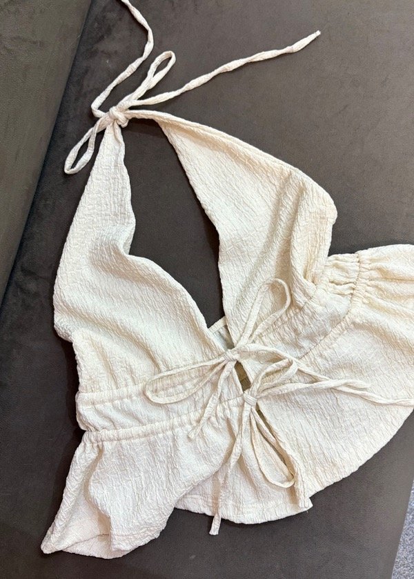 Top ajustable cuello y cintura color crema.