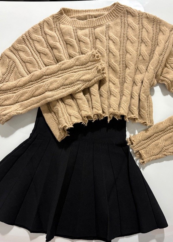Suéter tejido color caramelo con terminaciones.